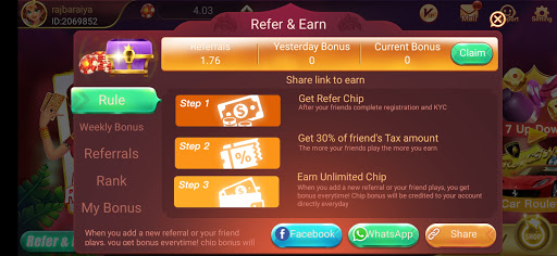 - When someone will Download Rummy 3A from your Share Link, you will get Rs 30%.
